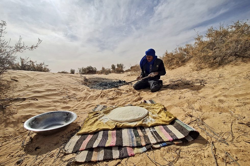 Découverte des traditions liées à la vie nomade : repas dans le sable, galette cuite dans les braises, soirée autour du feu aux sons des bendirs, …